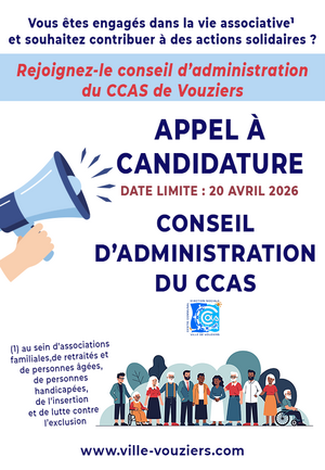 Conformément aux articles L.123-6 et R.123-7 du Code de l'action sociale et des familles, le Conseil d'administration du CCAS de Vouziers doit être recomposé à la suite du renouvellement du Conseil municipal.